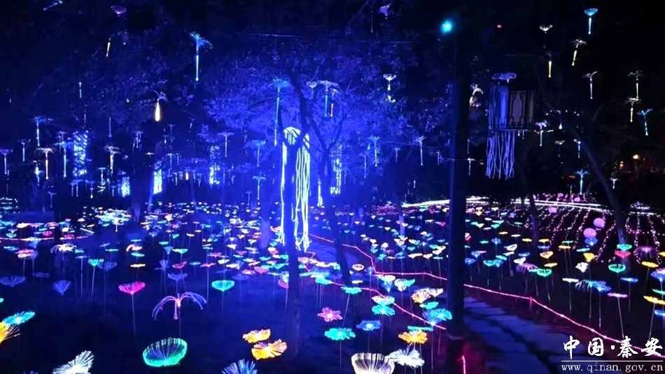 “我们目前灯光部分已完成安装90%,预计将在4月10日完工,届时会以灯光打造‘无限宇宙’、‘荷塘月色’、‘森林虫谷’、‘梦幻水母’、‘时光隧道’等主题场景,将给大家带来一场梦幻般的视觉盛宴,我们还将带来更精彩的舞台演艺,欢迎大家前来观赏。”西安丝路之光照明科技有限公司负责人邓元龙告诉记者。