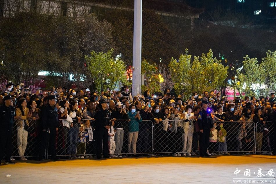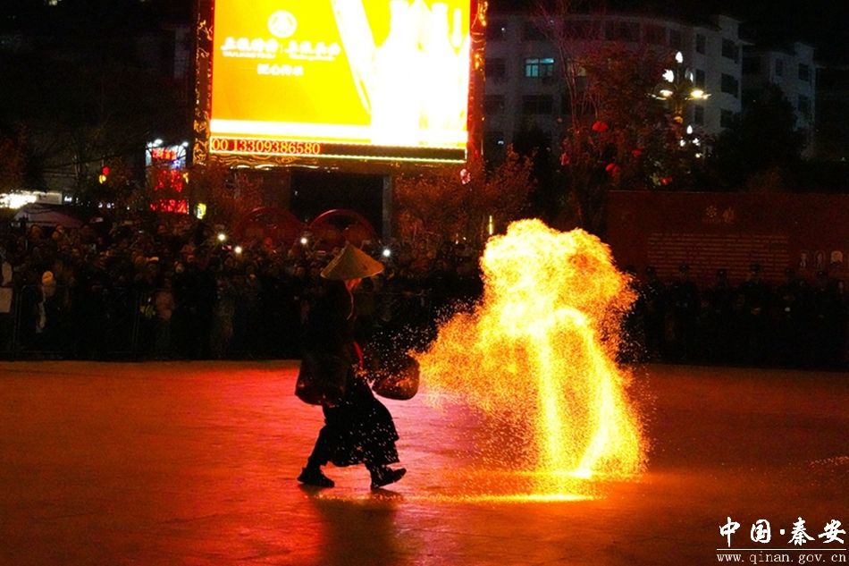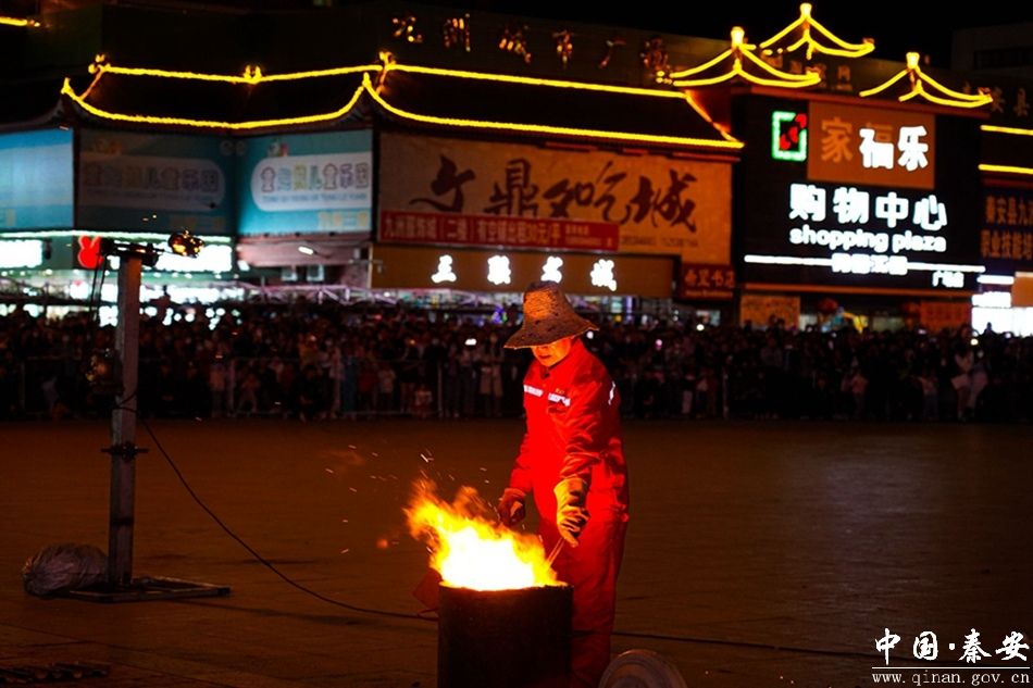 漫天缤纷的“铁花雨”,是传承千年的中式浪漫。现代打铁花表演在对古老技艺传承的基础上进行创新,不仅精心设计了灯光和音响效果,还增强了现场的沉浸感和体验感,将打铁花的视觉效果发挥到极致。变幻莫测、惊艳绝伦的铁花美景,给秦安夜晚增加了璀璨的色彩,也为即将举办的桃花会营造了浓厚的节日氛围。