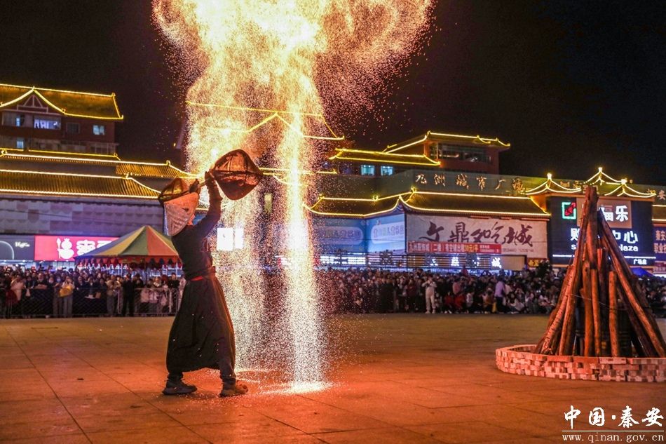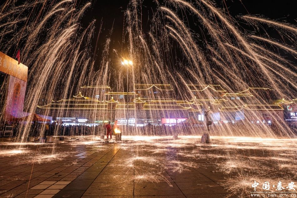 活动在非遗表演“打铁花”中拉开序幕,一勺勺滚烫的铁水洒向夜空,漫天飘落的铁花似火树银花、天女散花、银河流星…千度的铁水打造的不仅是一场美轮美奂的视觉盛宴,更是一场惊险与美妙并存的奇观。《战鼓擂动》的鼓手们动作与情感相融合,节奏和气势相协调,抑扬顿挫的鼓点、铿锵有力的旋律、灵动轻巧的动作,共同织成了一幅气势恢宏、震撼心腑的“凯旋欢庆”热闹喜悦画面。烟斗大叔头戴绿军帽,脚蹬雨靴,游走在人群边缘,不时与大家激情互动,诙谐的舞姿引得围观群众的叫好声不断。在动感的音乐声中,大家舞动着优美的身姿,脸上的喜悦笑容伴随着轻快活泼的旋律,围绕着篝火一起跳动《千人切切舞》和锅庄舞。市民们或是拿出手机拍照留念,或是发朋友圈分享,或是进行直播,整个活动现场掌声雷动、热闹非凡。