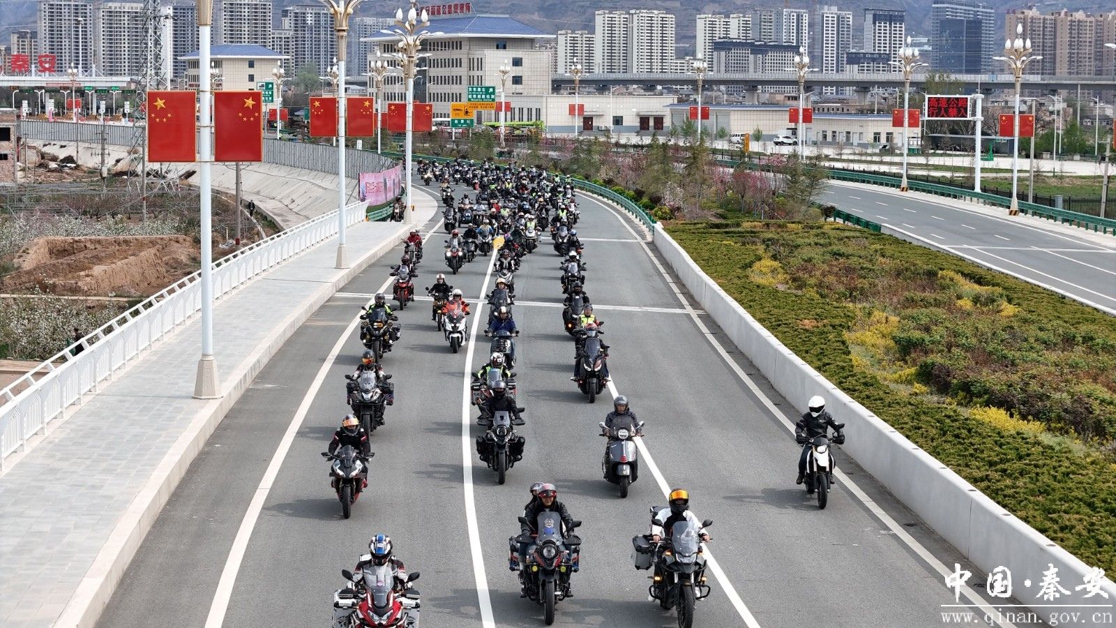 “在路上,看着秦安美如画的桃园风景,伴着耳边发动机的轰鸣,吃着秦安独到的地方美食,周围的一切触手可及。”这是摩友们在谈到摩旅时的感想。