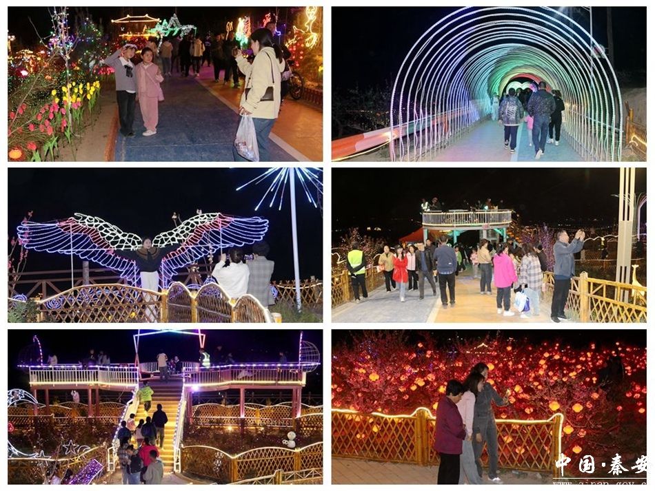 4月12日晚,2024甘肃秦安桃花会系列活动——“点亮桃乡·灯光秀”夜游万亩桃花源活动在刘坪镇精彩上演。