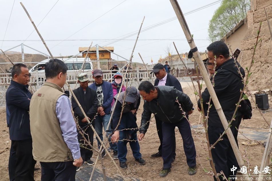 4月15日,秦安县果业局邀请国家桃产业技术体系专家来到魏店镇陈庄村、莲花镇桑川村、秦安县大地家园果蔬专业合作社及刘坪镇周湾村、秦洼村调研指导蜜桃种植、桃园生产管理及经营情况,为果农讲解桃树栽培、树形修剪技术和各类病虫害的防治方法等,为全县桃产业科学发展“把脉献策”。