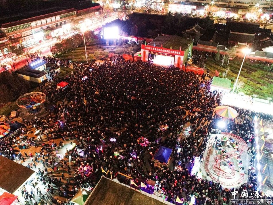 在美食街旁边的兴国文化广场,秦腔名家演唱会同步进行,“咚锵咚锵,咚咚锵……”来自西安三意社的演员们神采奕奕、精神百倍,以饱满的情绪、绝佳的发挥,将角色在舞台上展示得淋漓尽致,戏台之下,人山人海、密不透风。