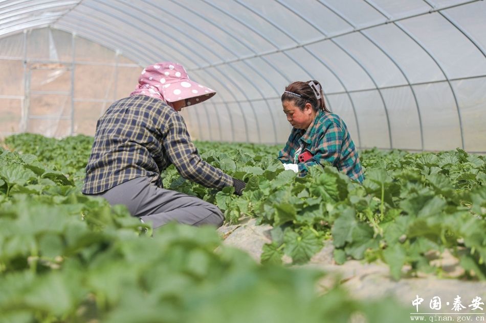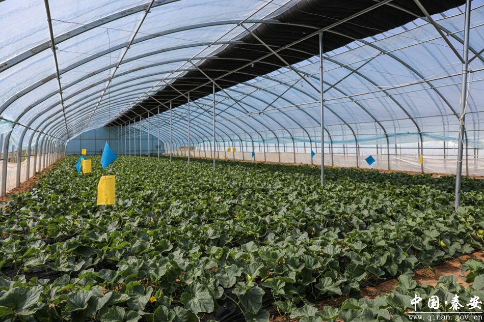 近日,记者在秦安县兴丰镇朱李、安湾等村采访时看到,在整齐排列的大棚里,一排排白脆瓜正在陆续开花结果,一片片绿色的藤蔓当中,点缀着黄色的花朵和刚结出的果实,长势十分喜人。