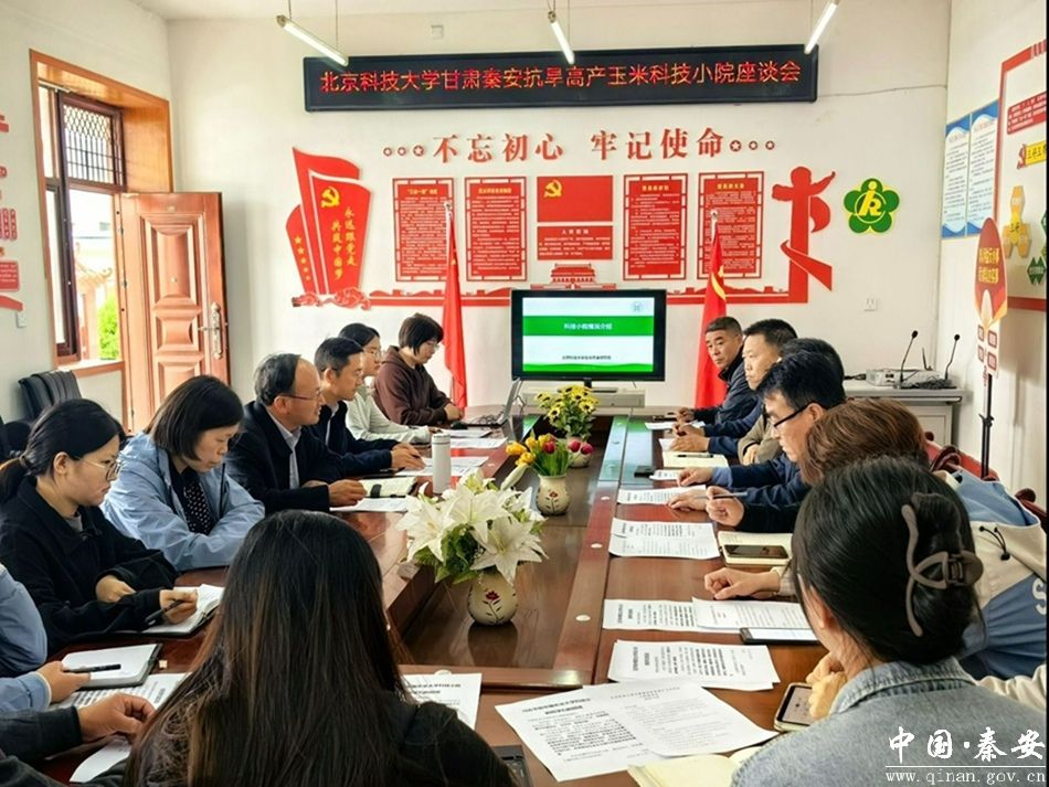 座谈会上,学习了习近平总书记给中国农业大学科技小院的同学们的重要回信精神,就建设好北京科技大学“甘肃秦安抗旱高产玉米科技小院”,做好北京科技大学秦安玉米育种试验基地和国家重点研发计划项目成果转化基地,助力秦安乡村全面振兴和农业农村现代化建设等工作进行了深入交流。