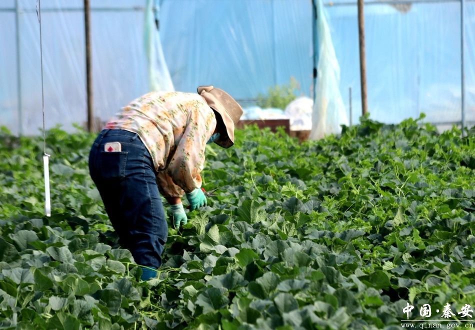 一株株的瓜苗上已经挂满了脆瓜,圆圆的,胖胖的,像个“白蛋蛋”等待采摘上市。“我今年种了六个大棚,预计一个棚的产量在两千斤左右,现在我们一家人在整理瓜枝,枝叶少点能够增加光合作用,提高白脆瓜糖分”。西川镇安坪村种植户安小平说道。