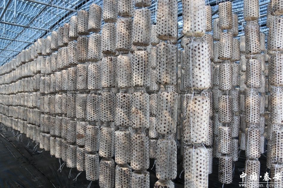 近日,记者来到秦安县兴丰镇黑木耳种植基地,只见一排排环保降解袋整齐地挂在钢构架上,黑木耳从袋上的小孔中探出头来,蓄势待发。
