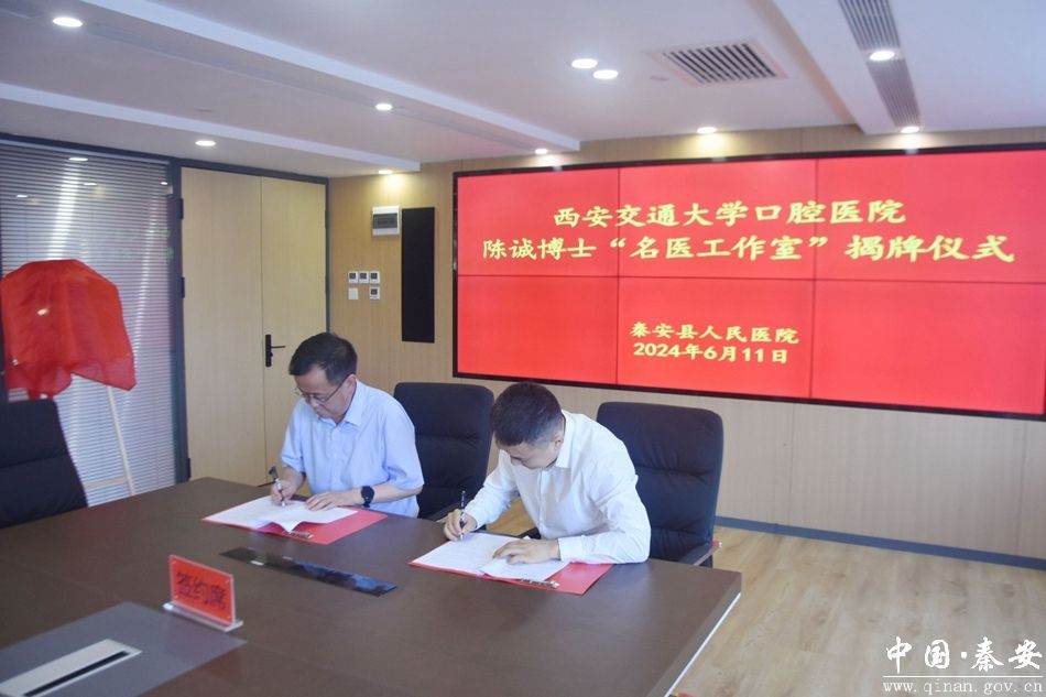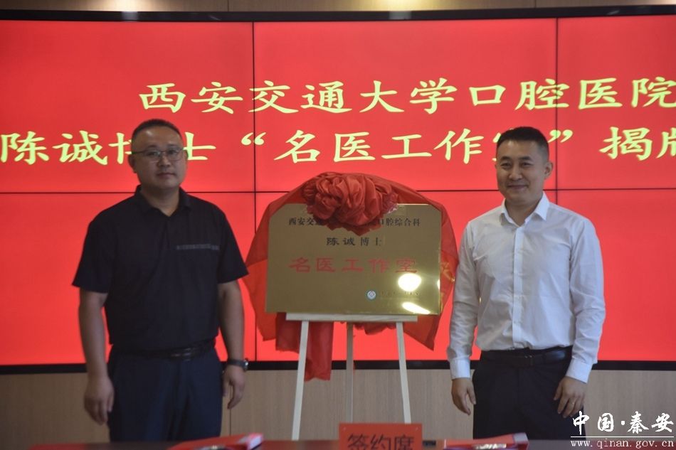 6月11日上午,西安交通大学口腔医院陈诚博士“名医工作室”揭牌仪式在秦安县人民医院举行。西安交通大学口腔医院口腔科陈诚博士,甘肃省人民医院肛肠科李来元博士,秦安县委常委、组织部部长夏子文,县政府副县长郑博出席揭牌仪式。