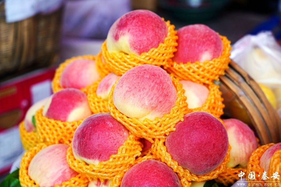 秦安县素有“蜜桃之乡”的名誉,产出的蜜桃因其皮薄味甜、肉质细腻、香脆可口广受八方客商的青睐,畅销全国各地。秦安蜜桃不仅对环境的适应性强,而且产果期长,从6月中旬上市的早熟桃到10月下旬的晚熟桃,销售期长达5个月。