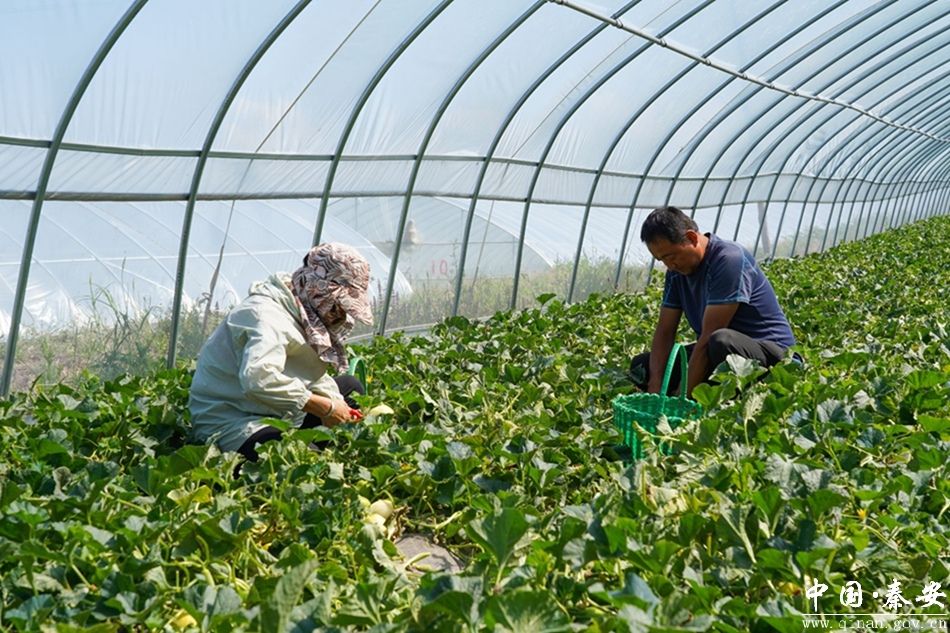 炎炎夏日,瓜果飘香。走进秦安县云山镇吴大村白脆瓜大棚内,入眼是一片生机勃勃,一颗颗色如白玉的脆瓜掩映在绿叶瓜藤中,清新的瓜香味扑鼻而来。成片的瓜棚依次排列,瓜农们不时穿梭其中,忙碌而有序地采摘、搬运、包装,构成了一幅乡村振兴的美好画卷。