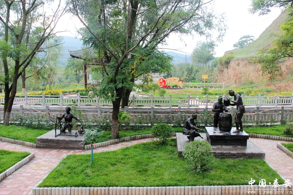 在杨子关丝路风情园里,可以看到农贸集市的旧时样貌,一边是农业来料加工区,有碾子、磨子、药碾子、杵臼等,一边是手工作坊区,有酿酒煮醋的、有纺线织布的,还有打铁的等等。“杨子关是西周时期‘关陇大道’上的一个重要关口,自汉代‘丝绸之路’开辟后,便是道路通衢之地,在乡村建设中还原农贸集市旧时样貌,意在让人们在休闲观光的同时,回忆传承历史文化、红色文化,汲取智慧和力量,激发出全面推进乡村振兴的磅礴力量。”陈庄村负责人介绍道。