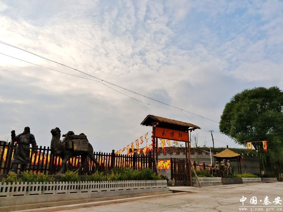 沿显清河东行至长安驿站,来到古丝绸之路出陇西行的第一个驿站,是保存完整的驿站遗址,陈庄村对遗址进行了修缮和提升,塑造了驼马形象,修建了观景亭廊,栽植了花草树木。“在这里,将4只客商歇息的古窑洞命名为‘天、地、人、和’,‘和’字由禾与口组成,提醒人们‘悠悠万事,吃饭是大事’,要始终绷紧粮食安全这根弦,节约粮食,提高粮食生产,树立大食物观。天地人和是中华民族独有的一种处世观念,也是成功不可缺少的三宝,寓意魏店广大人民和前来参观旅游的人们,在未来的发展中能够拥有此三宝。”陈庄村负责人告诉记者。