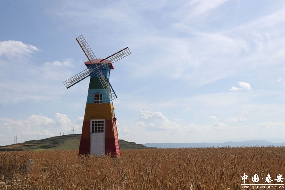 盛夏时节行走在秦安县云山镇 S207 省道,绿意醉人,麦浪滚滚。一路驾车驶入云山梁顶,周围山峰层峦叠嶂,脚下平坦开阔的沥青路向远处伸展,两侧延绵不绝的麦田,彩色风车、向云端、露营地等网红打卡点星罗棋布,吸引了众多游客前往游玩拍照。