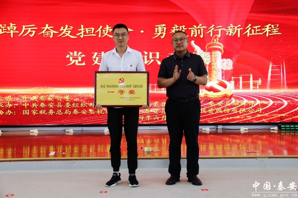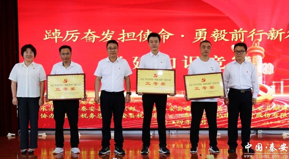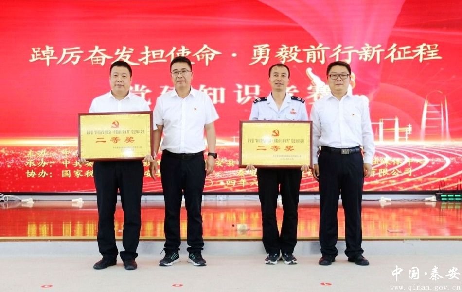 6月25日,秦安县“踔厉奋发担使命·勇毅前行新征程”党建知识竞赛总决赛在县税务局六楼举行。县领导夏子文、任云飞、景鹏、逯银霞参加活动并为获奖代表队颁奖。