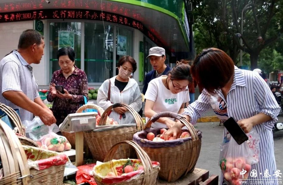 在秦安,像白舲这样的零售摊点还有很多。刘坪镇周家堡子的周茂子就是如此,他的7亩果园全部种植了蜜桃,每天清晨,他都会骑着三轮车前往果园采摘新鲜蜜桃,根据蜜桃的成色和品质进行分类,然后拉到县城销售。‘先尝后买’是他一贯的叫卖手段,不一会儿的工夫,他的摊位前就围满了人,大家争相购买老周的蜜桃,都想尝尝这早市上的新鲜美味。