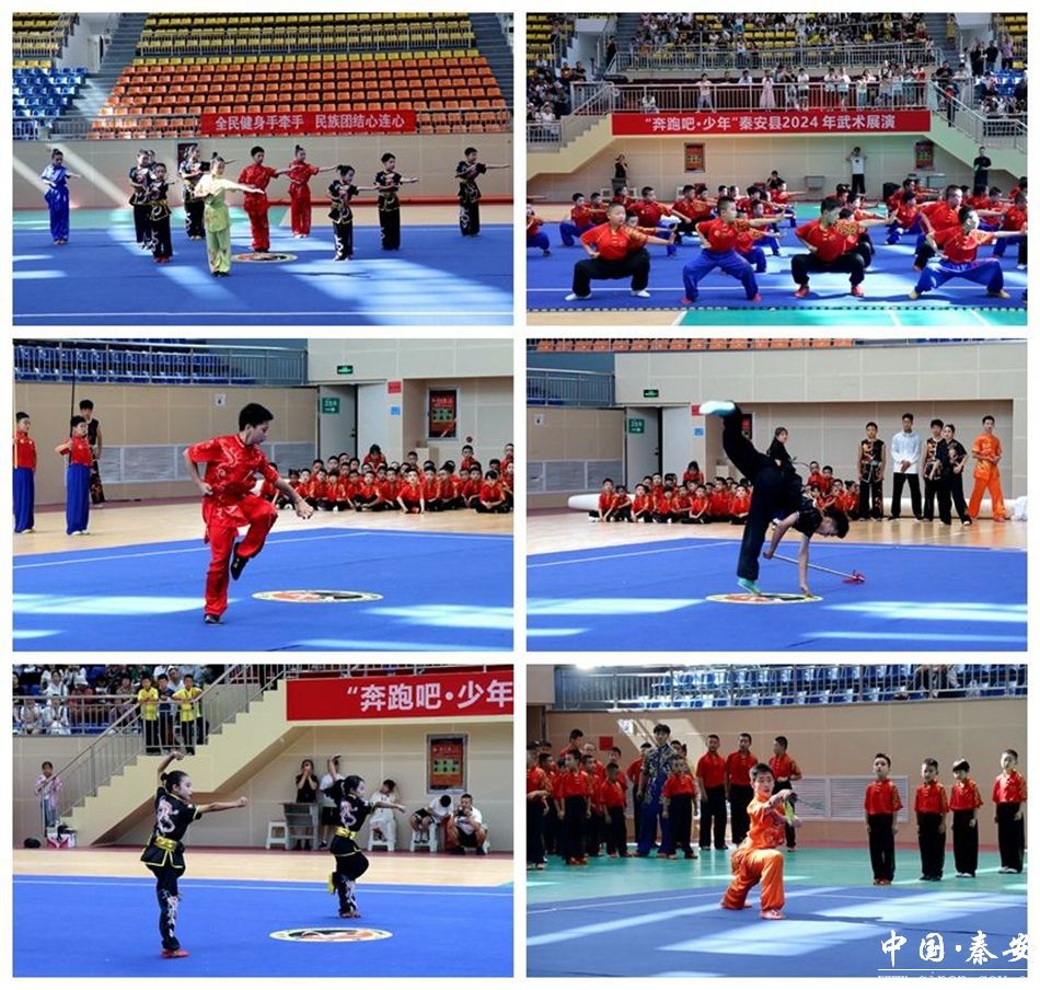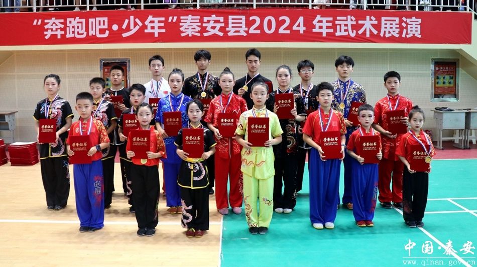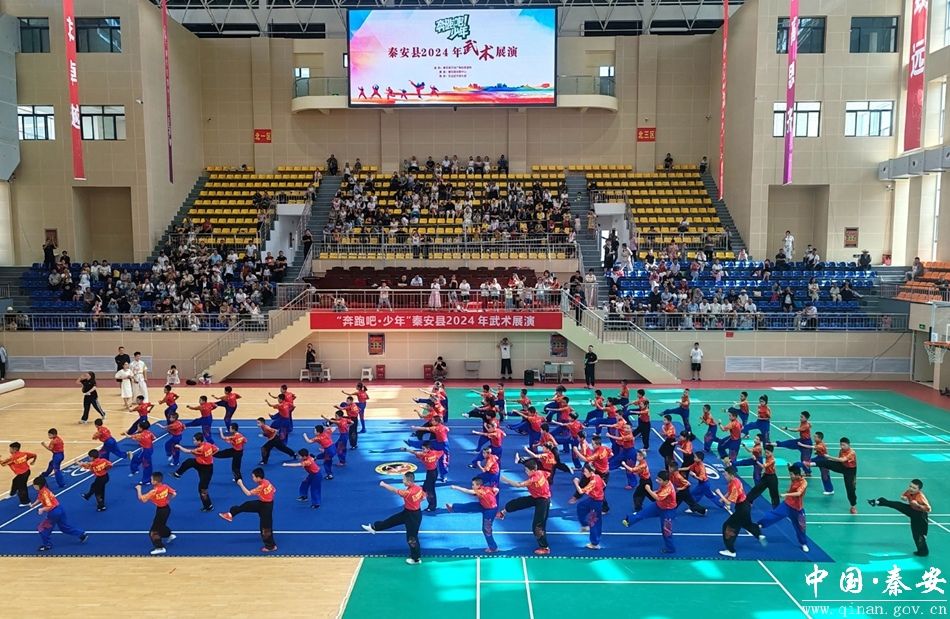 为深入学习贯彻党的二十大精神,持续提升传统体育文化的知名度和影响力,促进文体深度融合,6月29日,由秦安县文体广电和旅游局主办、秦安县体育中心承办、巨龙武术俱乐部协办的“奔跑吧·少年”2024 年武术展演在县一中体育馆隆重举行,演职人员和观众共700余人参加活动。