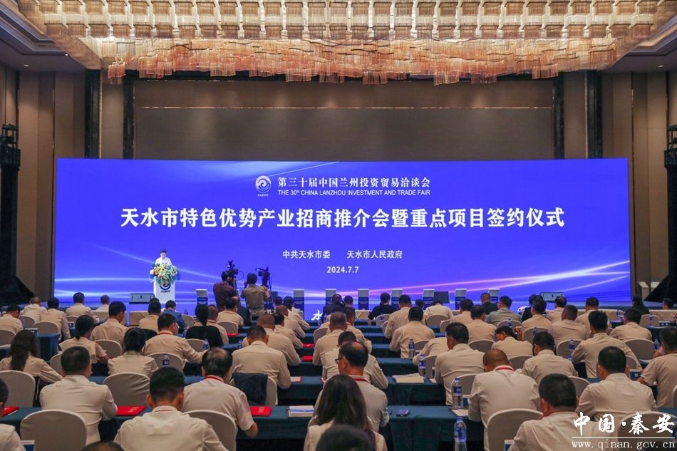 7月7日,第三十届兰洽会天水市特色优势产业招商推介会暨重点项目签约仪式在兰州万达文华酒店大宴会厅隆重举行。秦安县正合食品深加工、秦安县25万千瓦风电、新能源材料精密萃取和循环利用、冬花种植基地建设等7个项目顺利签约,拟引资58.1亿元。秦安县委副书记、县长王龙强,县政府副县长张小军,县招商局和相关企业负责人参加了项目推介及签约仪式。
