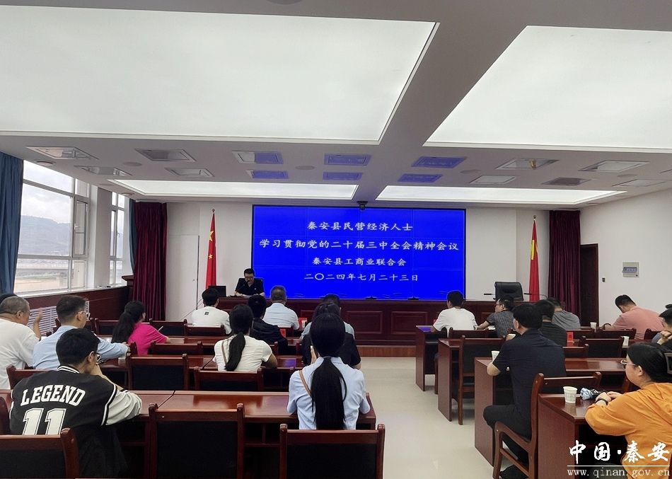 7月23日,秦安县工商联召开民营经济人士学习贯彻党的二十届三中全会精神会议,传达学习《中国共产党第二十届中央委员会第三次全体会议公报》 和《中共中央关于进一步全面深化改革、推进中国式现代化的决定》精神,引导民营经济人士准确把握全会精神,明确新时代民营经济的发展方向,推动民营经济高质量发展。