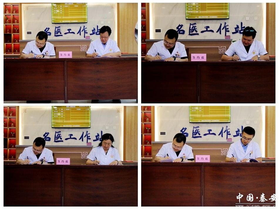 签约仪式上,名医工作室团队与县中医医院负责人签订了“名医工作室”合作协议,出席活动的领导为成立的8个“名医工作室”分别进行了揭牌。