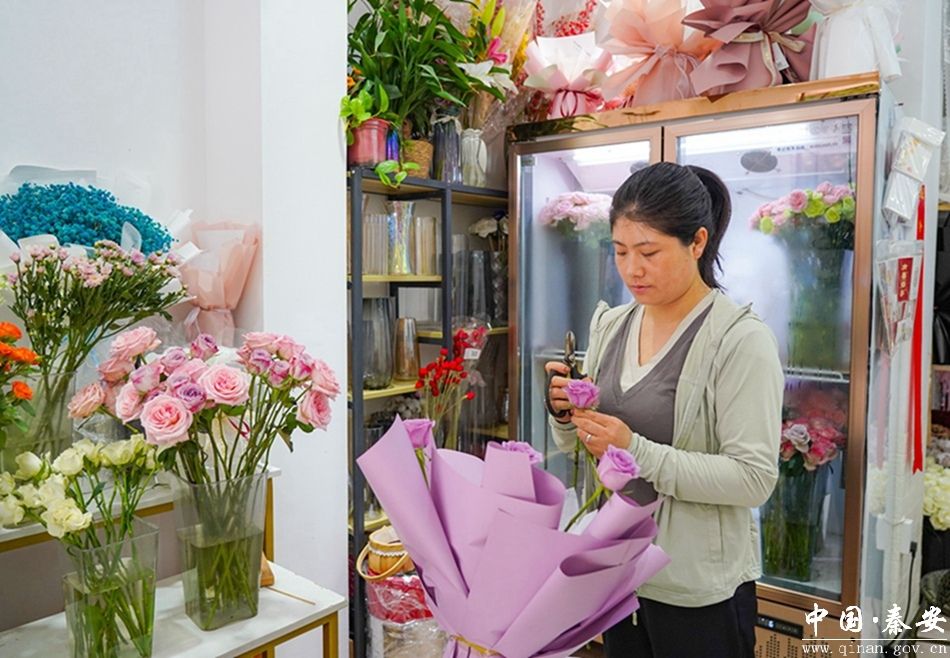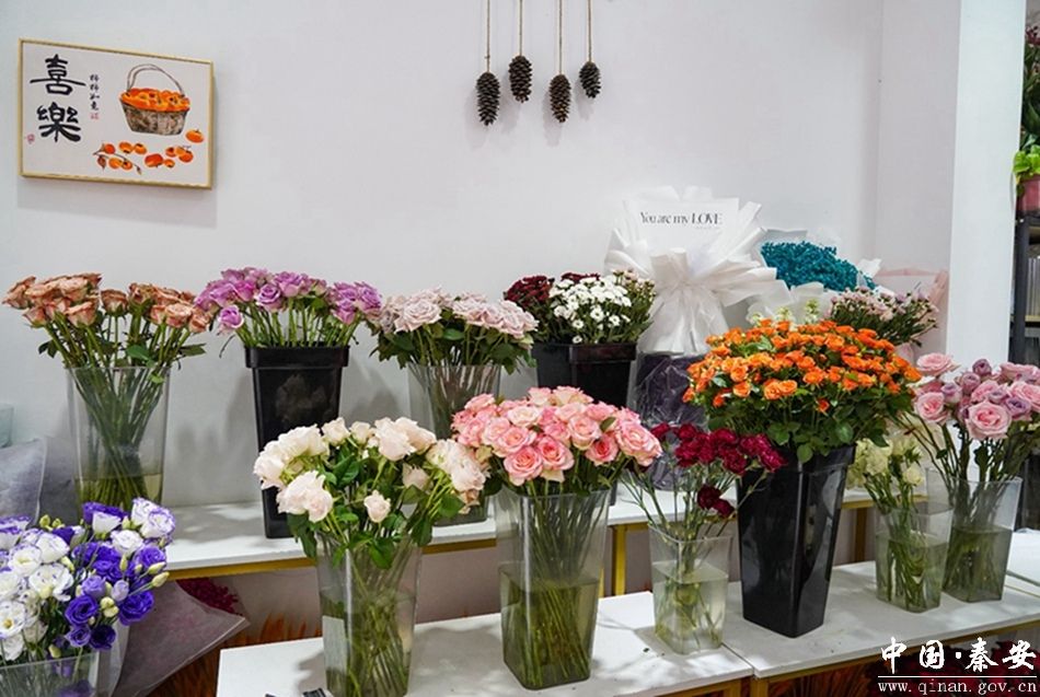 在七夕节这天,鲜花是必不可少的“主角”。在秦安各鲜花店,只见店内摆满了各式各样、色彩夺目的鲜花,架子上摆放有包装好的花束、礼盒供顾客挑选,店员们正在进行着剪枝、配花、包装等工作,现场一片忙碌的景象。