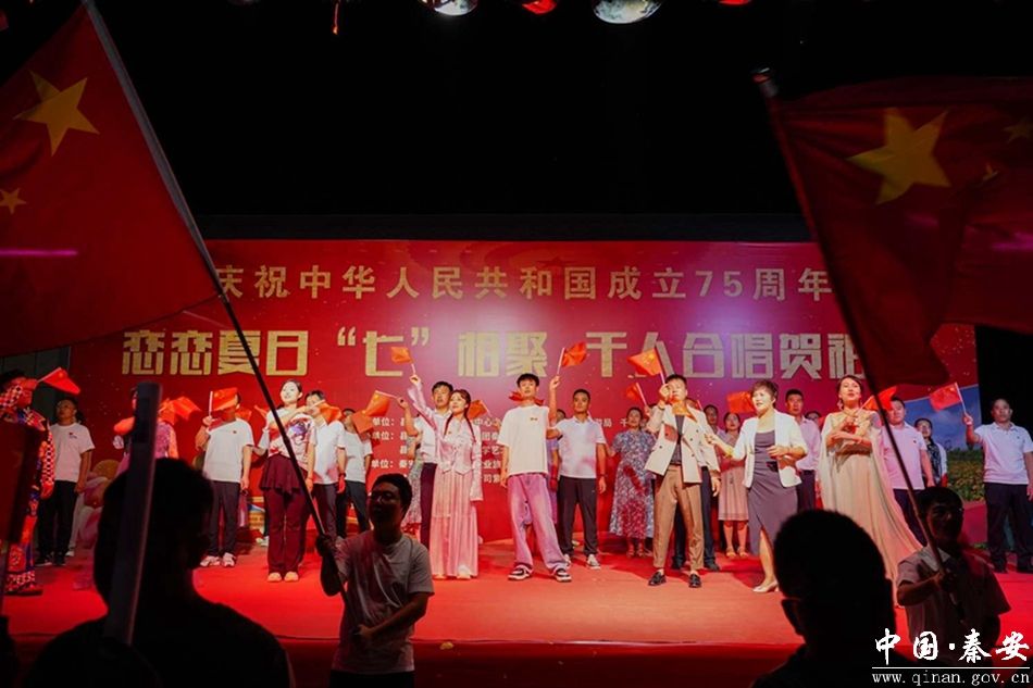 “我和我的祖国一刻也不能分割,无论我走到哪里都流出一首赞歌……”激昂的歌声不仅表达了秦安县人民对伟大祖国的热爱与祝福,也恰逢新中国即将迎来75周年华诞的喜庆时刻,为这一特殊的日子增添了浓厚的情感色彩。