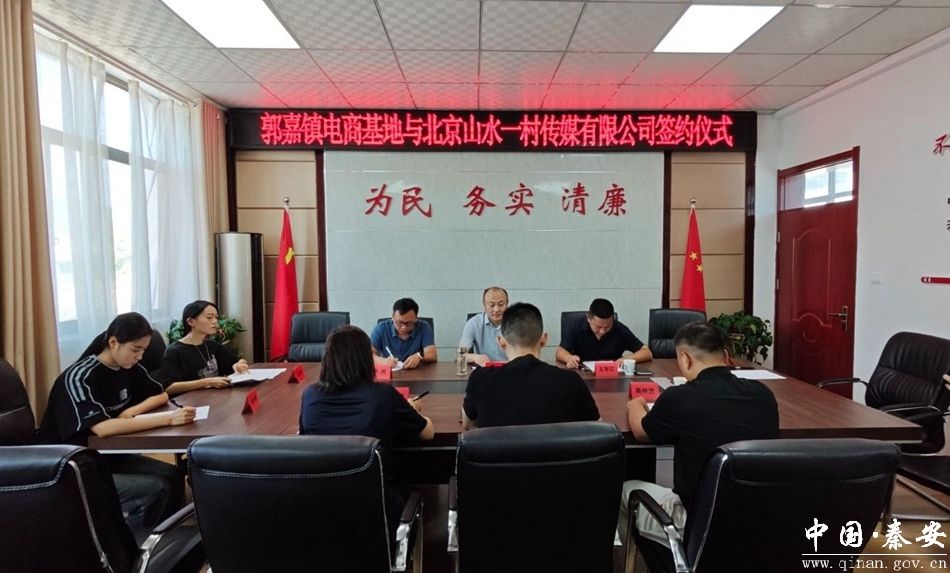 8月19日,郭嘉镇电商基地与北京山水一村传媒有限公司在郭嘉镇举行签约仪式,双方就提升郭嘉镇电商直播基地市场竞争能力、规范运营模式,如何更好发挥电商产业在促进消费升级、推动产业转型升级、助力乡村振兴等方面开展座谈交流。县政府副县长张小军、北京科技大学MBA校友会副会长李洲参加签约仪式。