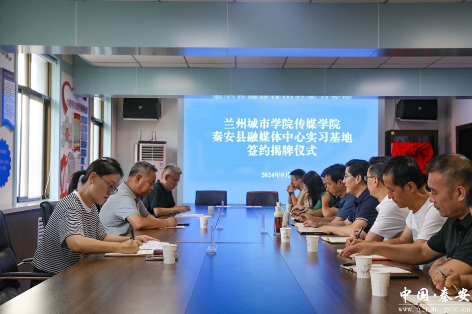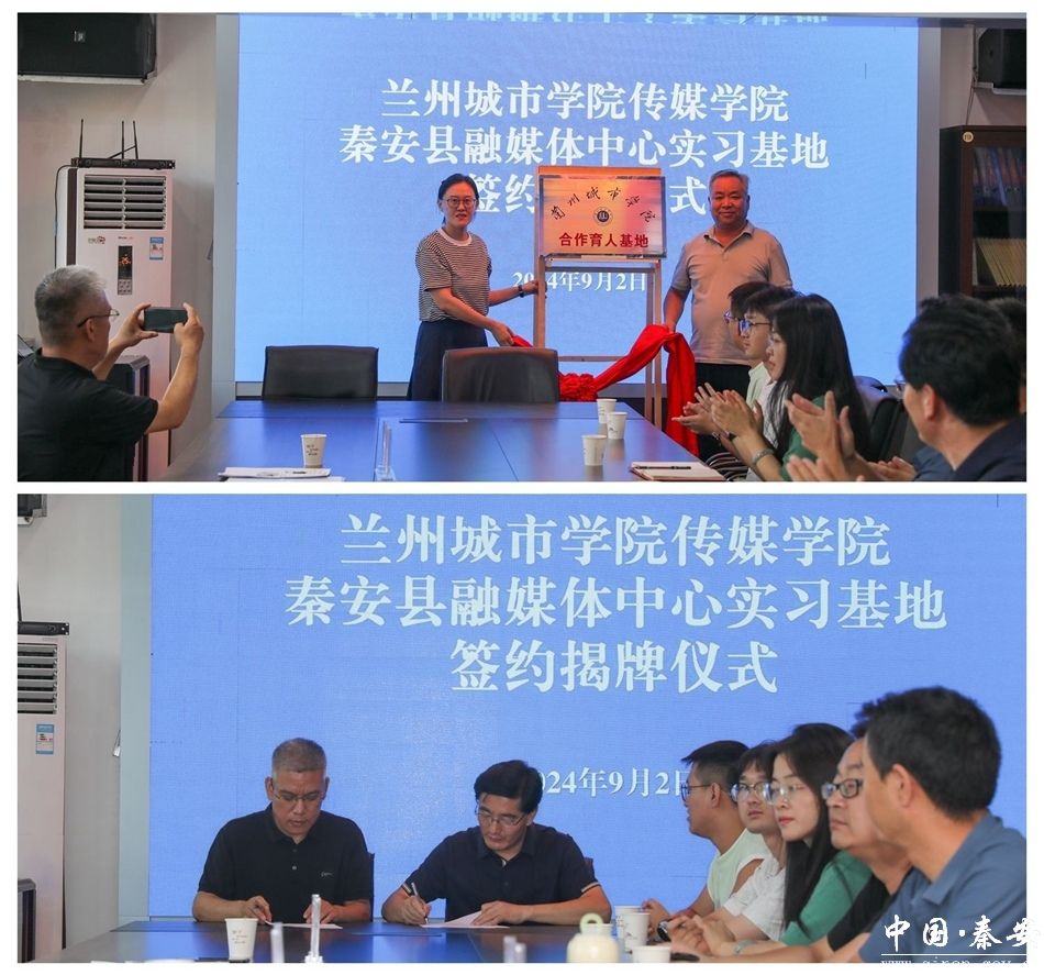 为加强校地合作,实现资源共享,促进学生就业实习质量,9月2日,兰州城市学院传媒学院与秦安县融媒体中心实习基地签约揭牌仪式在秦安县融媒体中心举行。兰州城市学院传媒学院党委书记李仰俊、副院长雷鸣,县委常委、宣传部部长马昊莹及县融媒体中心班子成员、相关部室负责人和实习学生参加揭牌仪式。
