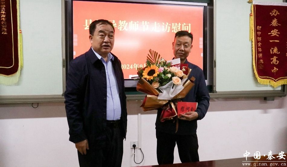 9月9日,在第40个教师节来临之际,秦安县委书记周济,县委副书记、县长王龙强,县人大常委会主任马顺祥,县政协主席杨喜春等县四大组织领导分别看望慰问长期工作在教学岗位的优秀教师、党员教师、困难教师、工作30年以上的老教师、乡村一线教师代表,向辛勤耕耘在全县教育战线的广大教师和教育工作者致以节日祝福和诚挚问候。