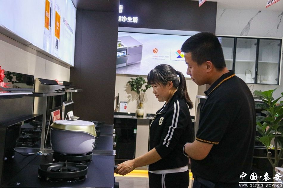 同样,在秦安县国玺水暖综合经营部和秦安金和盛海尔专卖店门店,前来咨询、选购的市民也是络绎不绝。门店里空调、冰箱、电视机、壁挂炉、厨具(集成灶,净水机)等一系列智能家电、家装一应俱全。店里多个醒目位置分别标着“以旧换新”的宣传标语,电视销售区内的电视屏幕上也不停地播放着“以旧换新”活动情况。