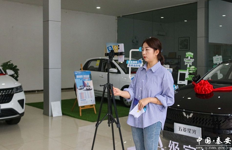 走进秦安华世五菱 4S 店,记者看到,展区内摆满了各类新款车型,销售人员正通过线上“抖音”“快手”直播,热情地向大家介绍热销车型的性能和配置,以及最新的优惠政策。同时,店里的工作人员也在热情地引导顾客进行线下体验试驾,感受车辆的操控性和舒适性。