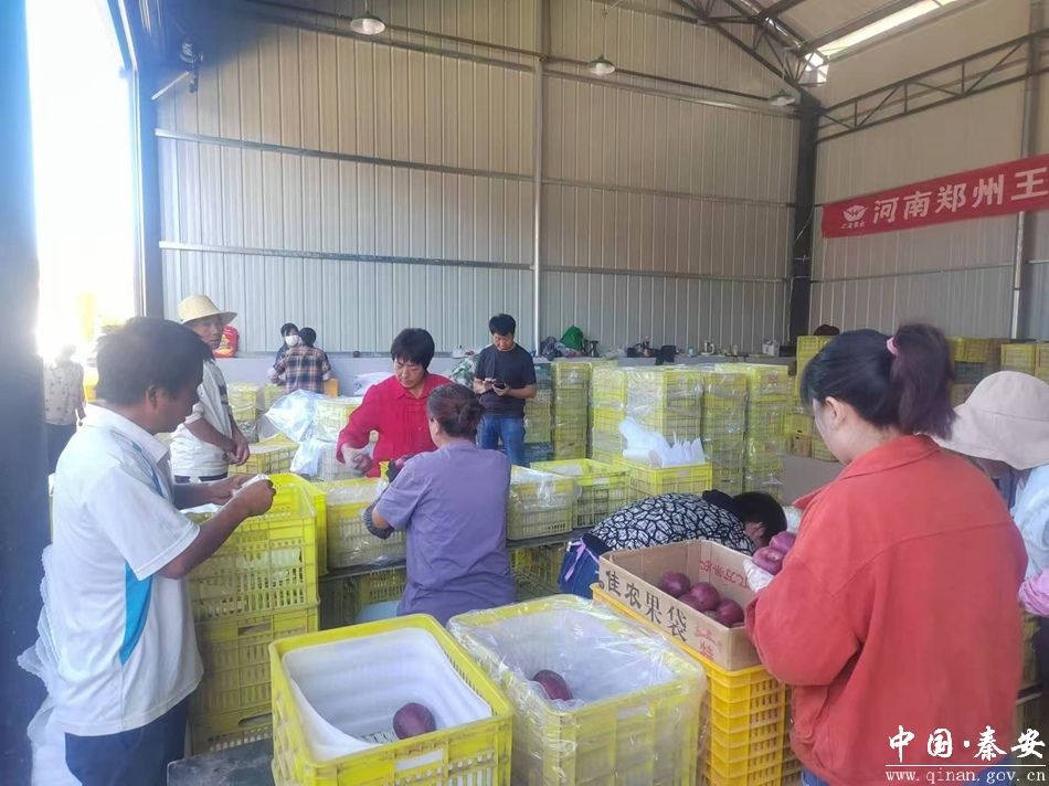 在收购点,苹果堆积成小山,不时有村民赶来售卖新鲜采摘的苹果。果农交货,客商验货,工人们包装、装箱、过秤、装车发车,一车车苹果从这里运往全国各地。