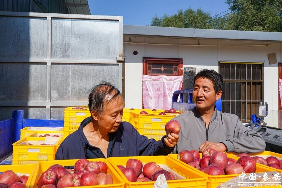 莲花镇得天独厚的自然条件为苹果的生长提供了优越的环境。充足的阳光、适宜的气候和肥沃的土壤,使这里生长的苹果口感细腻、甜度高、营养丰富,不少客商也纷纷前来收购。在莲花镇冯沟村苹果收购点,工人们紧锣密鼓地分拣、包装着刚刚收购的苹果。