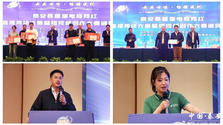 夏子文说,近年来,秦安县委县政府高度重视电商产业发展,大力推动电子商务与实体经济有机融合,赋能高质量发展。举办这次大赛,是我们积极响应时代发展潮流,推动电商事业创新发展的一项重要举措,也是挖掘和培育电商人才,更好宣传、推介和销售我县特色产品,助力乡村振兴的生动实践。今后,我们将持续加大对大赛的支持力度,希望各位获奖选手能够珍惜荣誉,不断提升自己的专业水平和创新能力,打通全县农特产品销售的“最后一公里”,将秦安好物推送到全国各地,全方位传播秦安好风光、好故事、好产品,为全县经济社会高质量发展贡献电商力量。