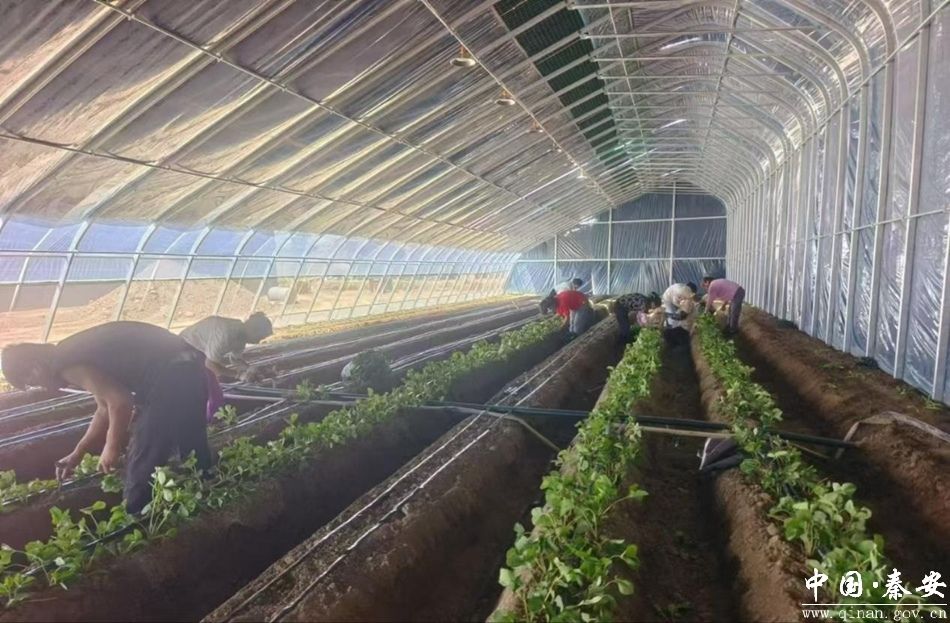 近年来,秦安县刘坪镇坚持抓产业促发展的思路,在继续做大做强做响做精蜜桃、苹果林果支柱产业的基础上,以发展壮大村集体经济为目标,以农文旅融合为主导,谋划建成刘坪镇草莓产业园。