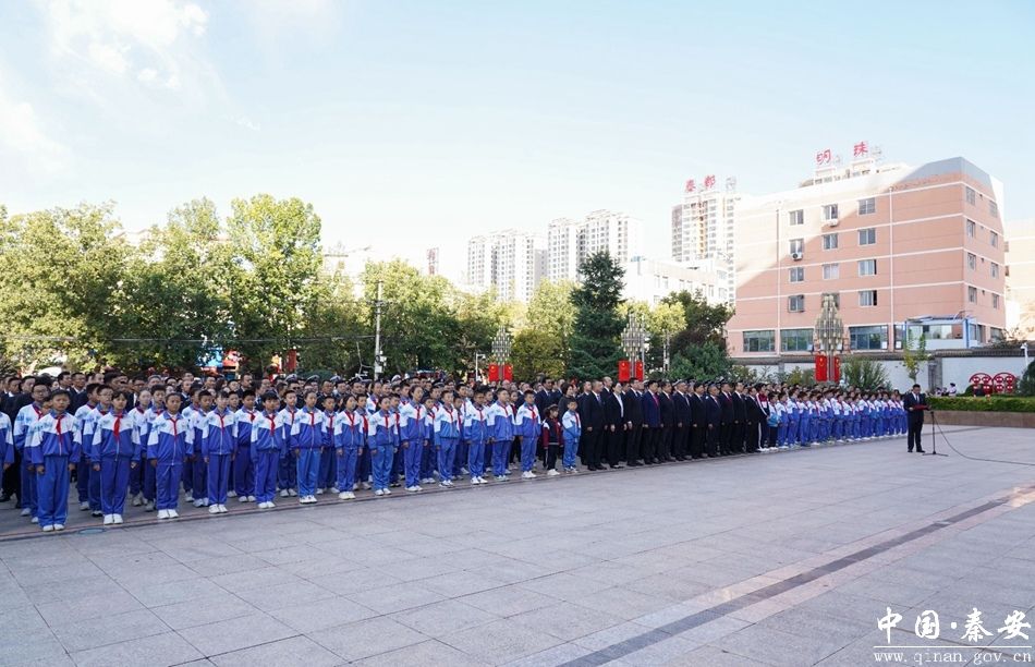 10月1日上午,秦安县庆祝中华人民共和国成立75周年升国旗仪式在县行政中心广场隆重举行。县委书记周济,县委副书记、县长王龙强,县人大常委会主任马顺祥,县政协主席杨喜春等县四大组织在家领导,县直各部门、驻秦各单位主要负责人,各镇党委书记和镇长,各行各业干部职工、公安干警、中小学生代表共700余人参加升国旗仪式。