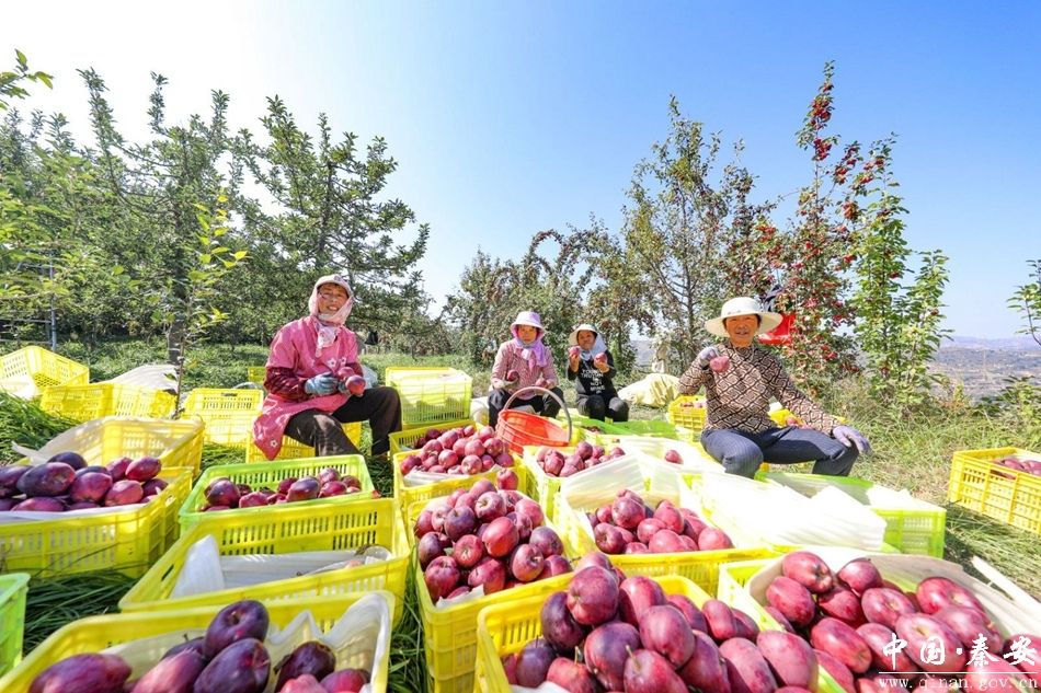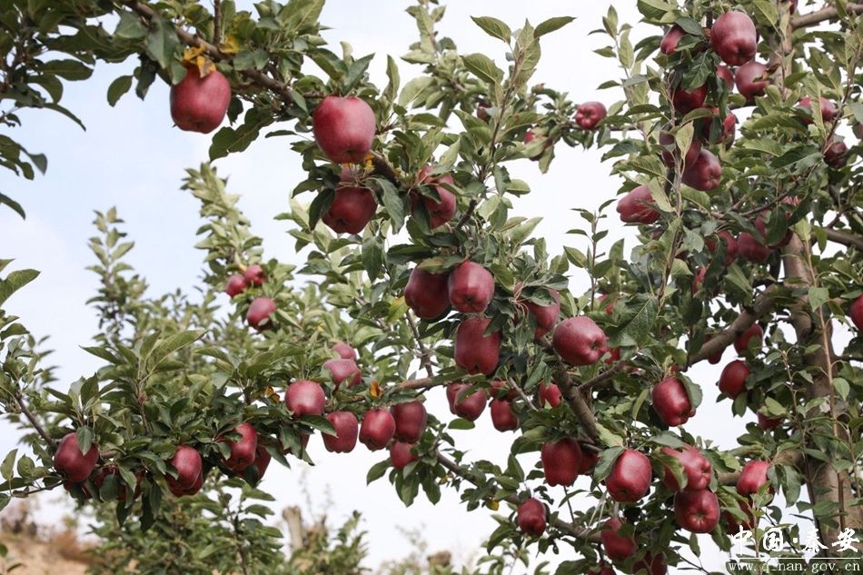 俗语说“一重秋风一重冷,一场秋雨一场寒”。寒露时节,秋意渐浓,气爽风凉,随着气温的下降,秋收和秋播都到了最后关头。在秦安,正值全县苹果成熟采收的时节,漫山果园里,果树上挂满了沉甸甸的红苹果,空气中到处弥漫着沁人心脾的果香,在蓝天白云与绿叶的映衬下,苹果显得格外晶莹剔透,果农们忙着采摘,满园呈现出一片秋日丰收好风景。在县区各收购点,苹果也是堆积成小山,不时有果农赶来售卖新鲜采摘的苹果。果农交货,客商验货,工人们包装、装箱、过秤、装车发车,一车车苹果从秦安运往全国各地。