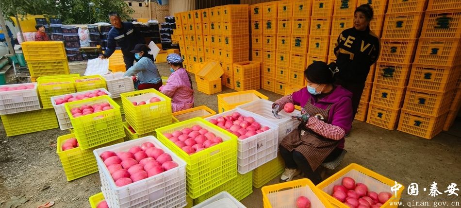 来自浙江省湖州市的客商蒋小峰,一大早已经收购了多家果农的苹果。分拣、称重、套袋、装箱,大家分工明确,工作如行云流水般顺畅。他介绍说“由于气候适宜,叶堡镇红富士苹果品质非常好,颜色也比较红,价格也合理,平均每天能收购两万多斤苹果。”