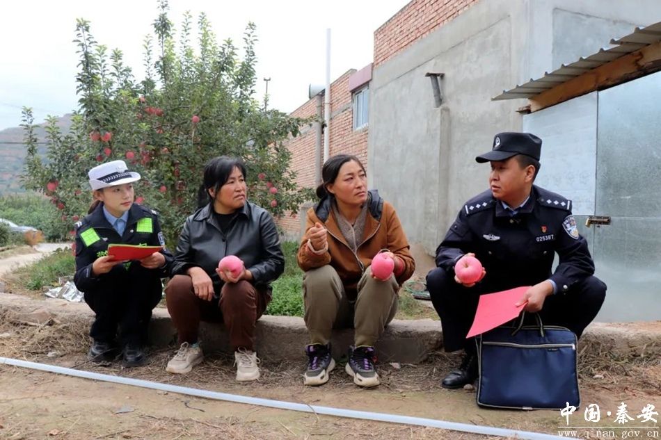 当前,正值苹果丰收时节,秦安县辖区果园内硕果飘香满园红到处都是忙碌的采摘景象,田间地头一片繁忙,果农们脸上洋溢着丰收的喜悦。为护航辖区特色农业产业和社会经济高质量发展,秦安县公安局坚持和发展新时代“枫桥经验”,聚焦“派出所主防”定位,充分发挥职能作用,在保农、护农、利农上下功夫、出实招,全力开启“果园警务”模式,将警力下沉至田间地头,为民解忧、维护道路安全、调处矛盾纠纷、宣传防范知识,全力护航安全生产,帮助广大群众收获“‘苹’安果实”。