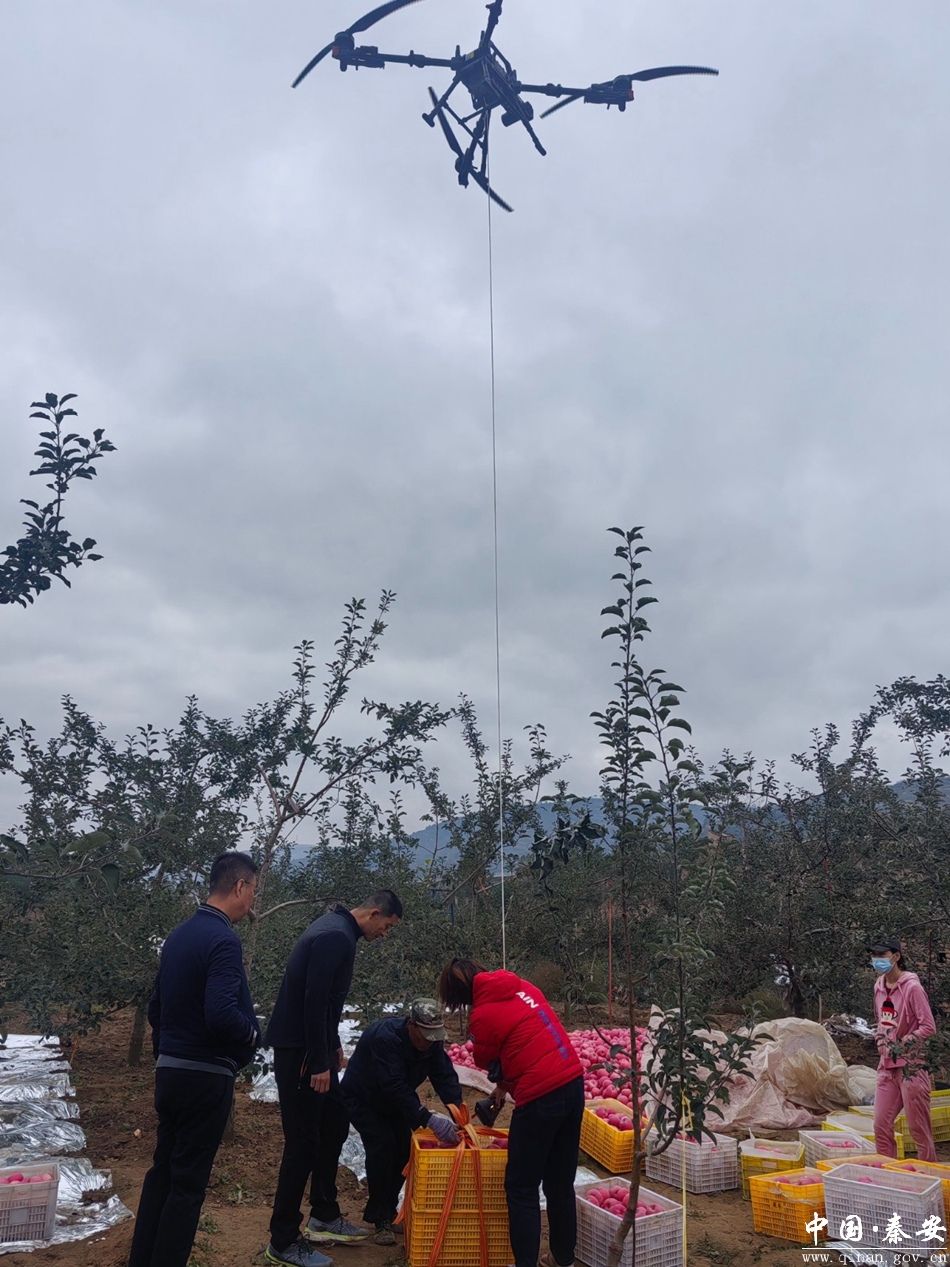 “以前我们都是肩挑手扛,把苹果运到收购点,真的太累了。现在有了无人机,几分钟就能把苹果运到目的地,特别方便。”正在装苹果的果农感慨道。