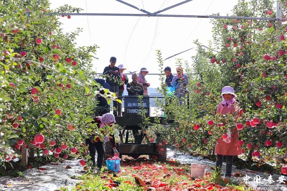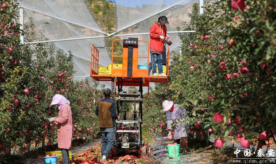 金秋十月,硕果累累。眼下,正是苹果丰收的季节,在秦安县五营镇绿野种植专业合作社的苹果基地,300亩红富士苹果进入采摘期,果农们正忙着采摘、分拣、装筐,呈现出一派繁忙而有序的丰收景象。今年,合作社首次采用了先进的苹果采摘平台车,极大地提高了采摘效率,确保苹果的高品质上市。