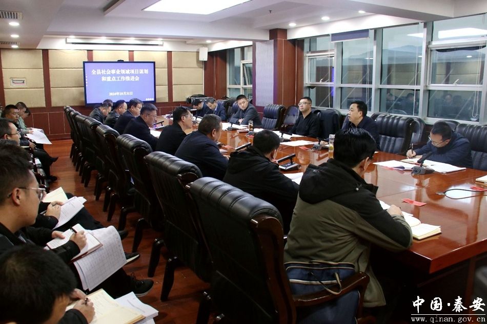 10月31日,秦安县委副书记、县长王龙强主持召开社会事业领域项目谋划和重点工作推进会,听取项目谋划和重点工作完成情况汇报,分析研判存在问题,并对下一步工作进行安排部署。县领导张俊义、郑博参加会议。