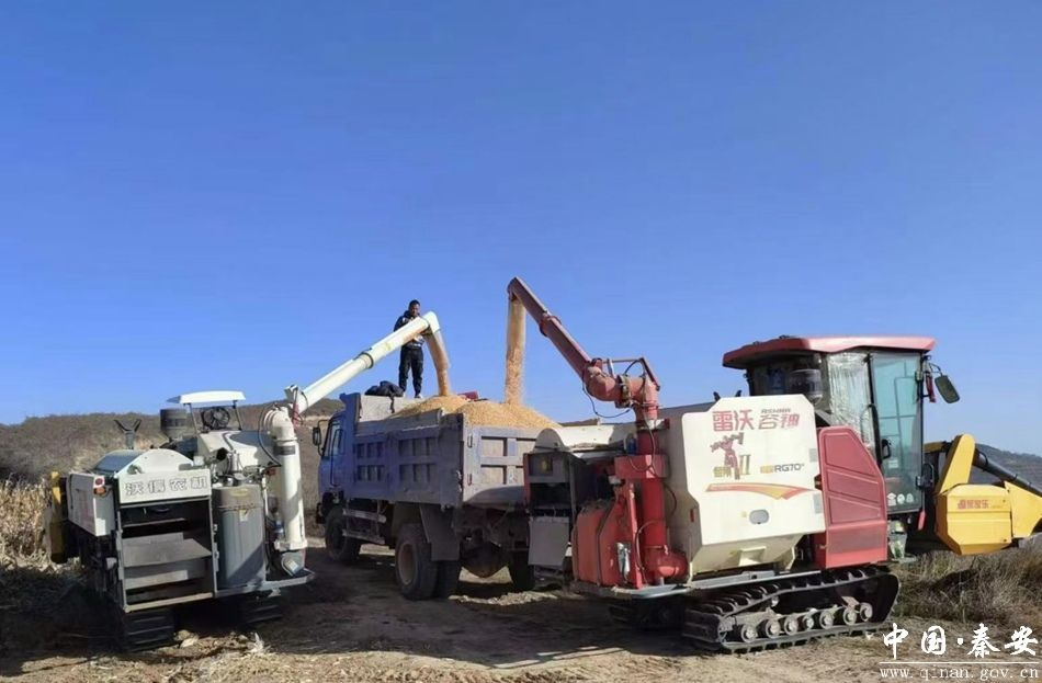 金秋玉黍香,秋收正当时。眼下,秦安县叶堡镇玉米收割工作接近尾声,种植户们抢抓晴好天气,积极投入到采收、晾晒等工作中,收割机的轰鸣声和人们的欢笑声在田间地头奏响着丰收的交响曲。