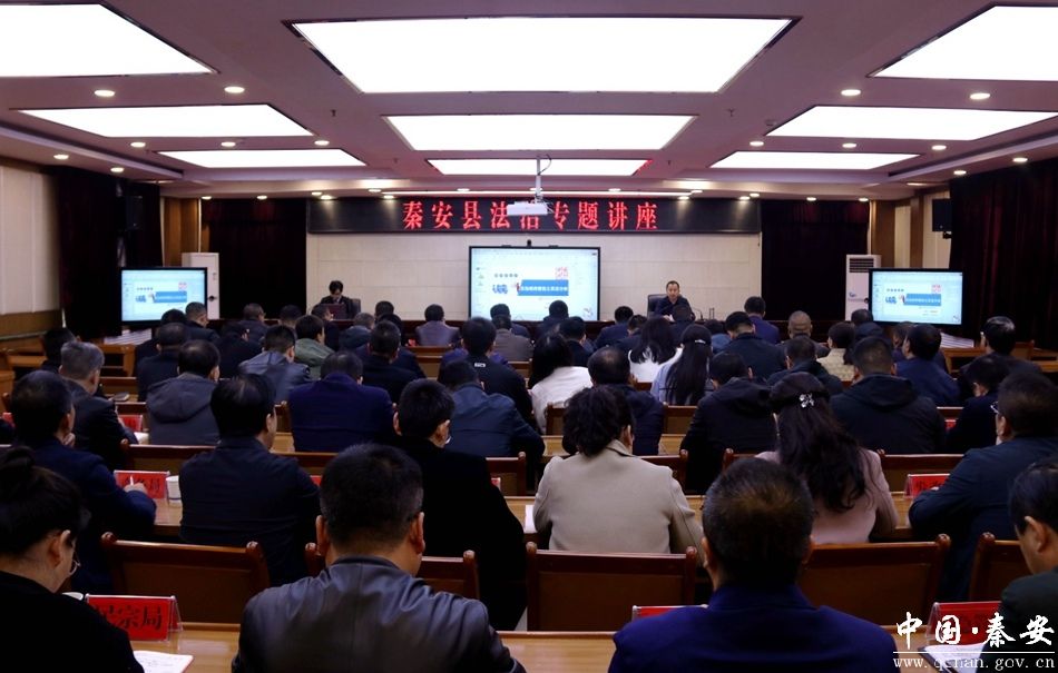 11月6日,秦安县法治专题讲座举行,邀请县政府法律顾问单位甘肃端方律师事务所马强强律师授课,县政府副县长、公安局局长赵智彦主持讲座。