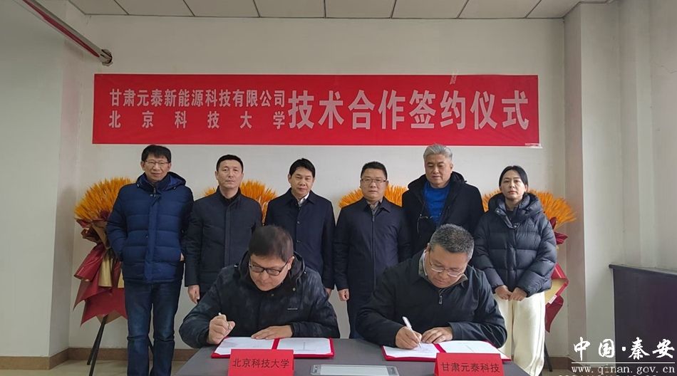 12月19日,北京科技大学与甘肃元泰新能源科技有限公司技术合作签约仪式在甘肃元泰新能源科技有限公司举行。北京科技大学乡村振兴与县域经济发展研究院执行院长沈崴,县政府副县长景鹏,县工业集中区管委会及甘肃元泰新能源科技有限公司相关负责人出席签约仪式。