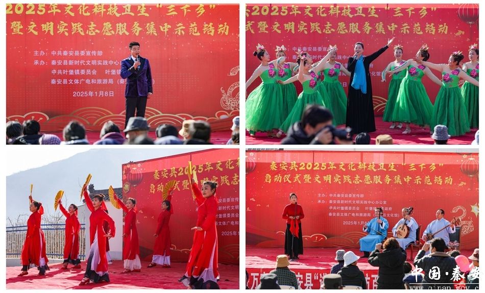 1月8日,秦安县2025年文化科技卫生“三下乡”暨新时代文明实践志愿服务集中示范活动在叶堡镇庞宋村启动。县领导马昊莹,高小强,陈存录,杨宏权及县直部门、叶堡镇党政负责人、志愿者和干部群众代表参加活动。启动仪式由县政府副县长郑博主持。