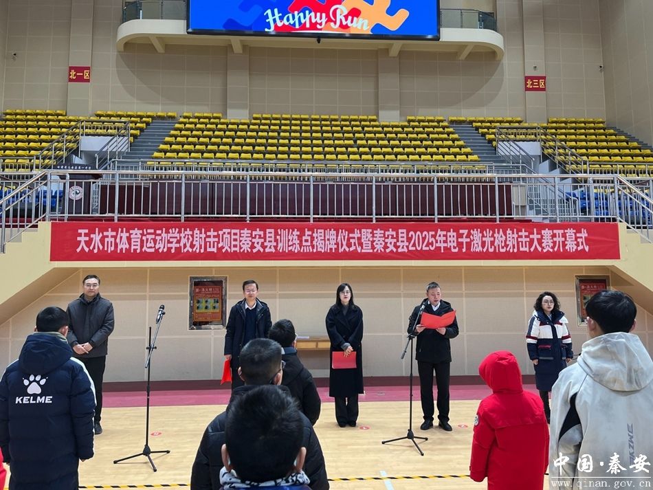 1月16日,天水市体育运动学校射击项目秦安县训练点揭牌仪式暨秦安县2025年电子激光枪射击大赛在秦安县体育馆开赛,县委常委、宣传部部长马昊莹,县政府副县长章春军及各相关单位部门负责人和参加射击比赛的运动员等共计200余人参加活动。