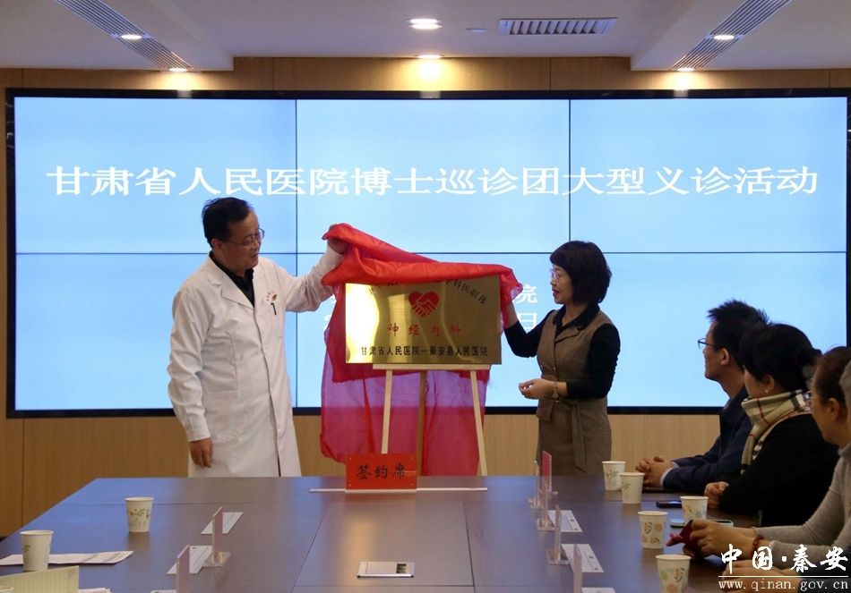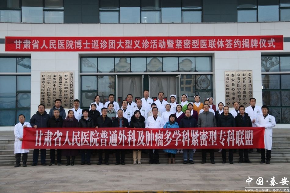 为进一步加强专科(技术)联盟建设,发挥专家团队引领作用,有效提高医院各类疾病的诊治水平,持续提升医疗服务能力,方便广大群众就医,1月18日,甘肃省人民医院博士巡诊团大型义诊活动暨紧密型医联体签约揭牌仪式在秦安县人民医院举行。甘肃省人民医院对外协作处处长王一敏及省人民医院博士巡诊团专家,县政协副主席雒小军、县人民医院领导班子及相关科室负责人共计40余人参加活动。