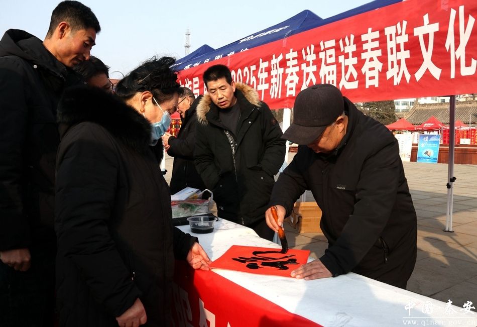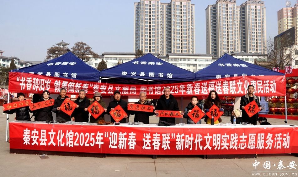 “无联不成春,有联春更浓”。春节将至,为进一步弘扬中华优秀传统文化,营造喜庆温馨、欢乐祥和的新春节日氛围。1月22日,秦安县文旅局联合县图书馆、文化馆在县文化广场开展2025年新春送福送春联文化惠民活动。