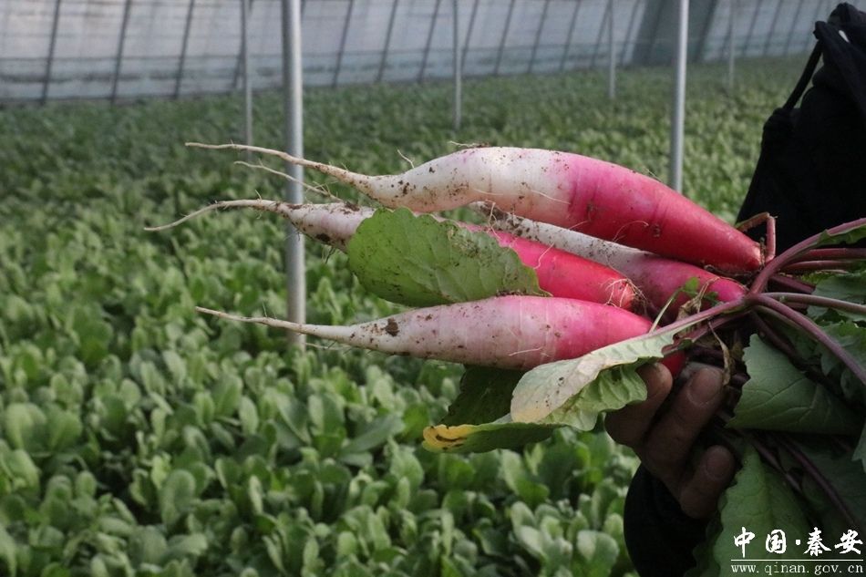 大棚负责人王海斌告诉记者:“之前种的玲珑小番茄,由于土地肥沃,为了倒土壤,现在又种了红头水萝卜,颜色鲜亮,脆,甜。”