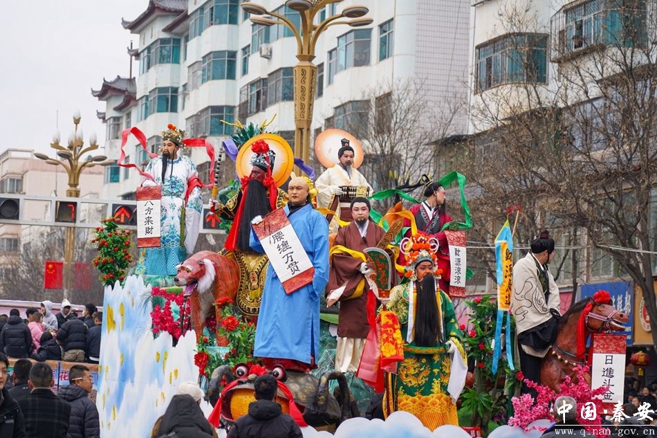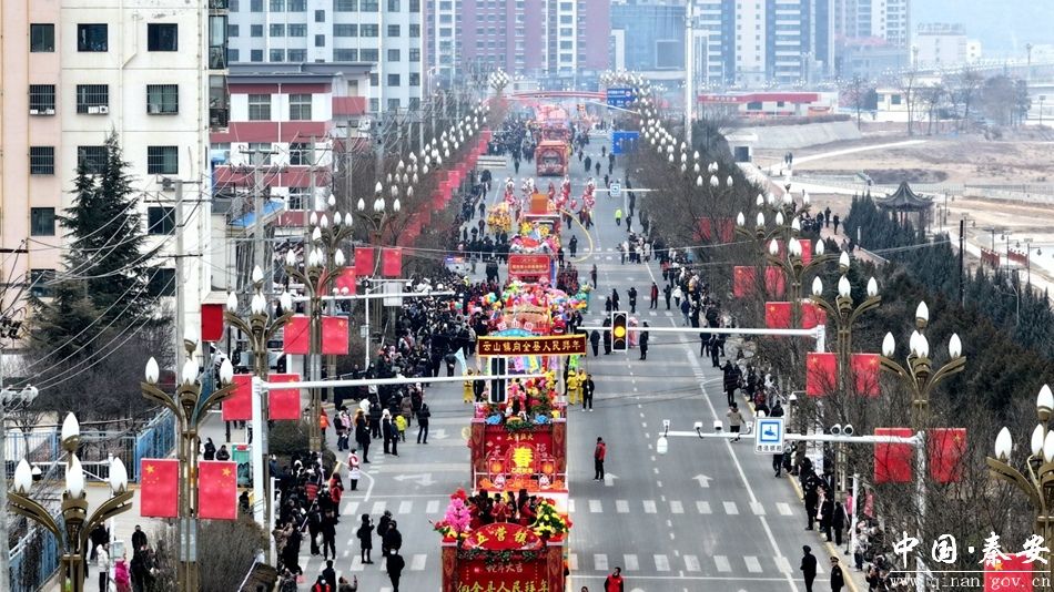 2月10日,农历正月十三,秦安县城沉浸在一片欢乐祥和的节日氛围中,一场盛大的社火汇演激情上演。来自全县17 个镇及一家企业的18 支社火队伍齐聚一堂,用具有浓郁传统文化特色的表演,为全县人民献上了一场精彩绝伦的视觉盛宴,吸引了上万群众驻足观看,现场气氛热烈,年味十足。